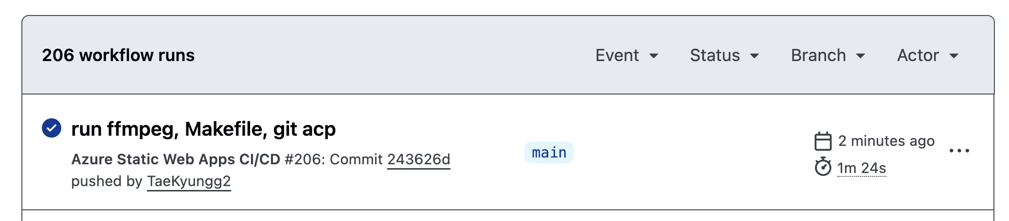 deploy에서 깃허브 푸시한다. 이후 깃허브 액션에서 azure에 배포한다.